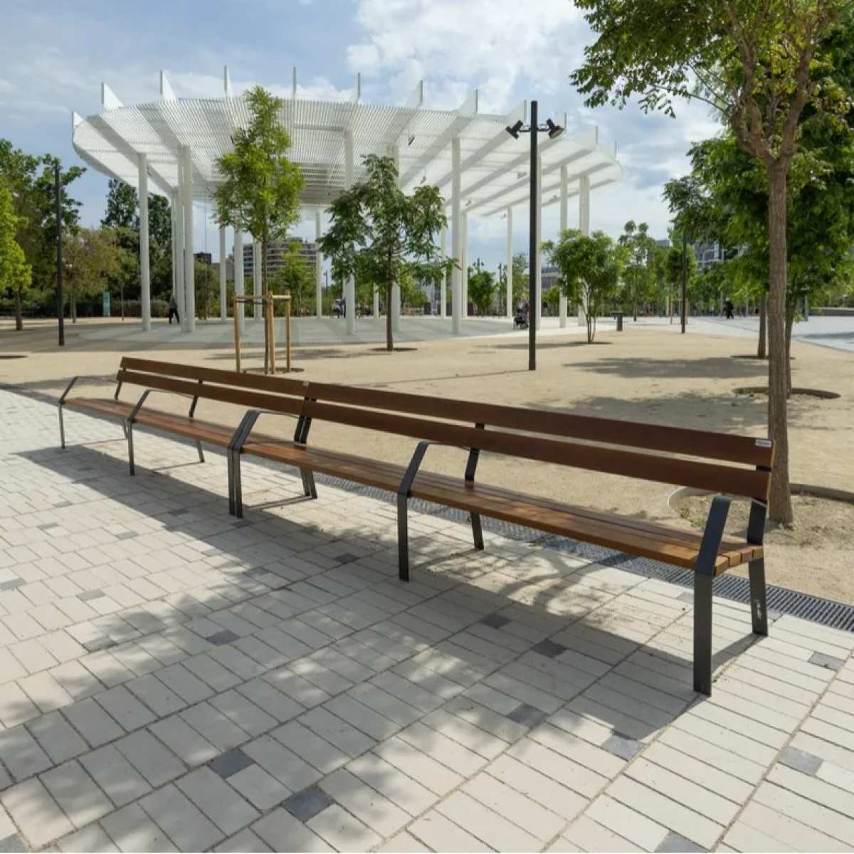 Banca stradala dubla din otel si lemn exotic model MINIM10
