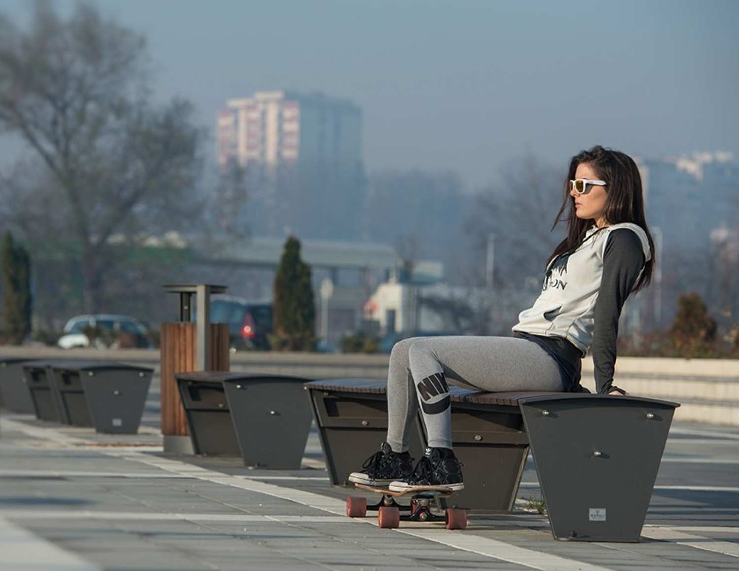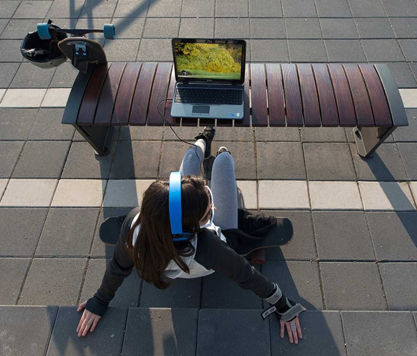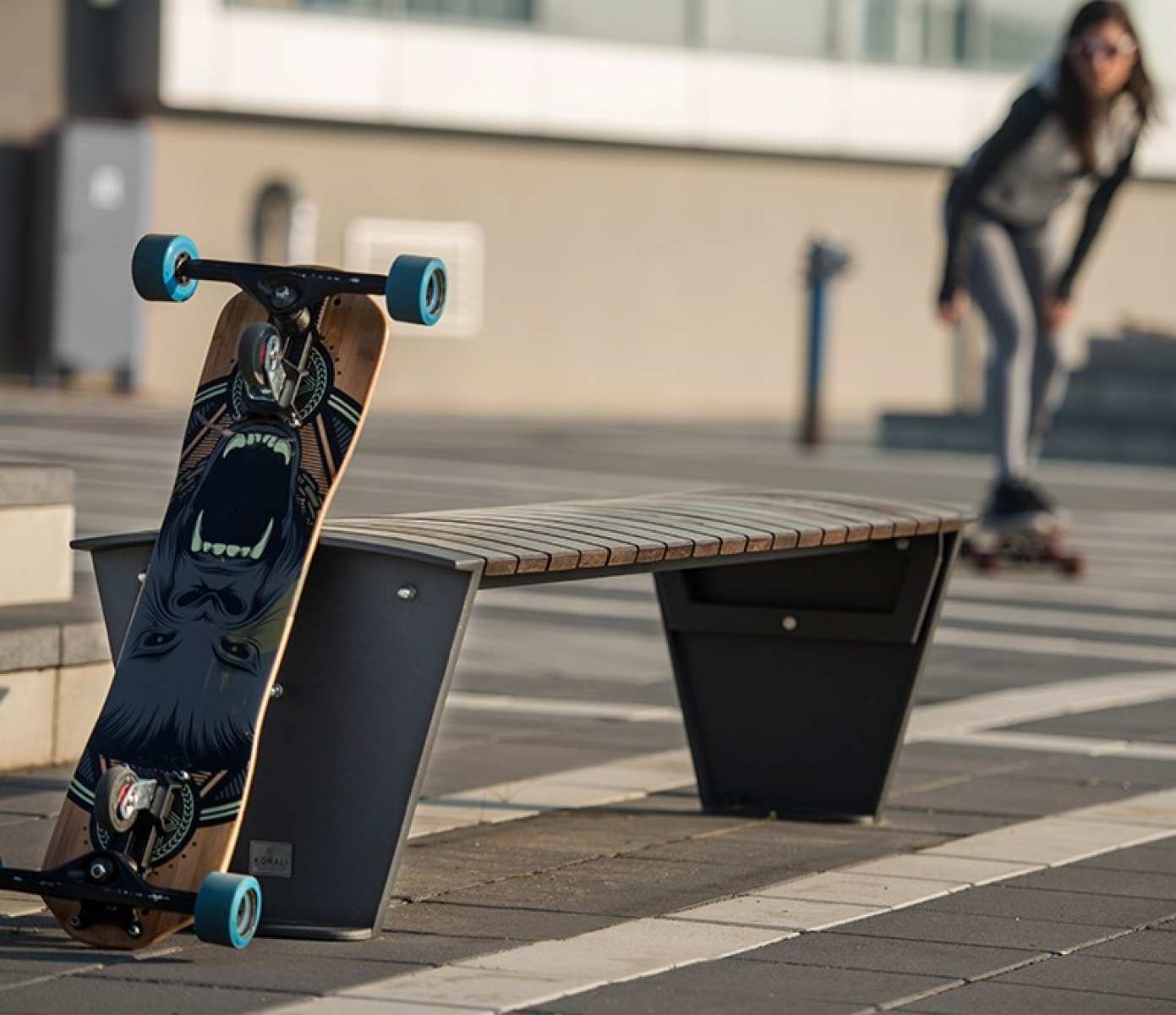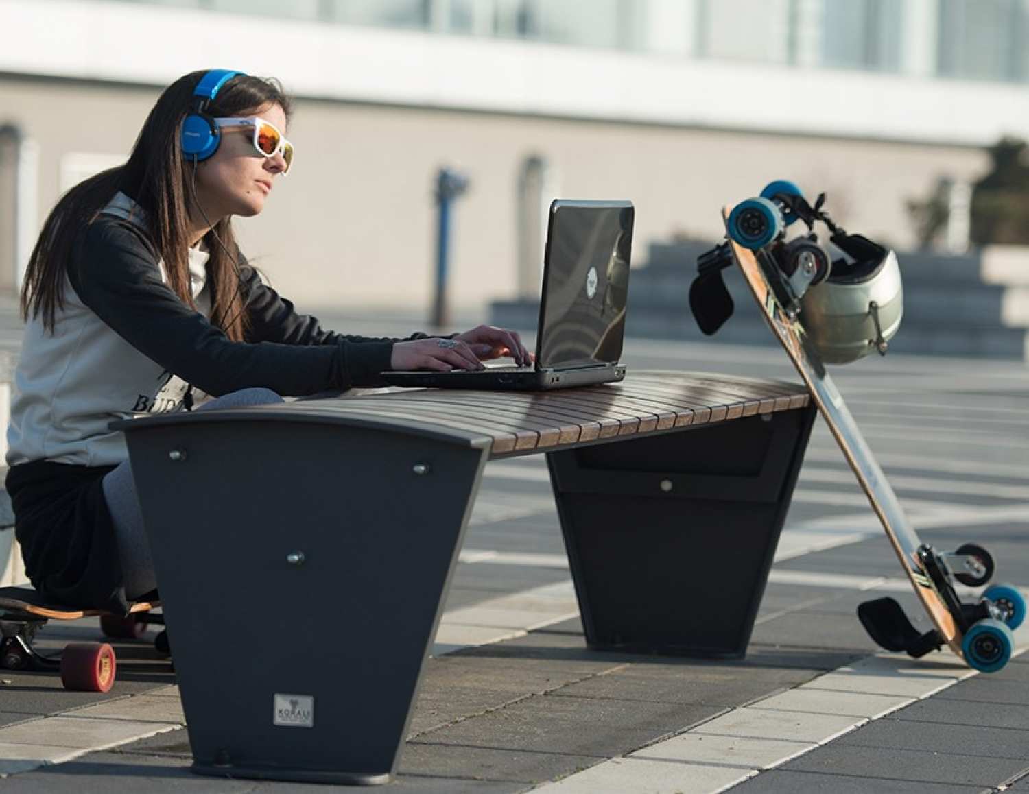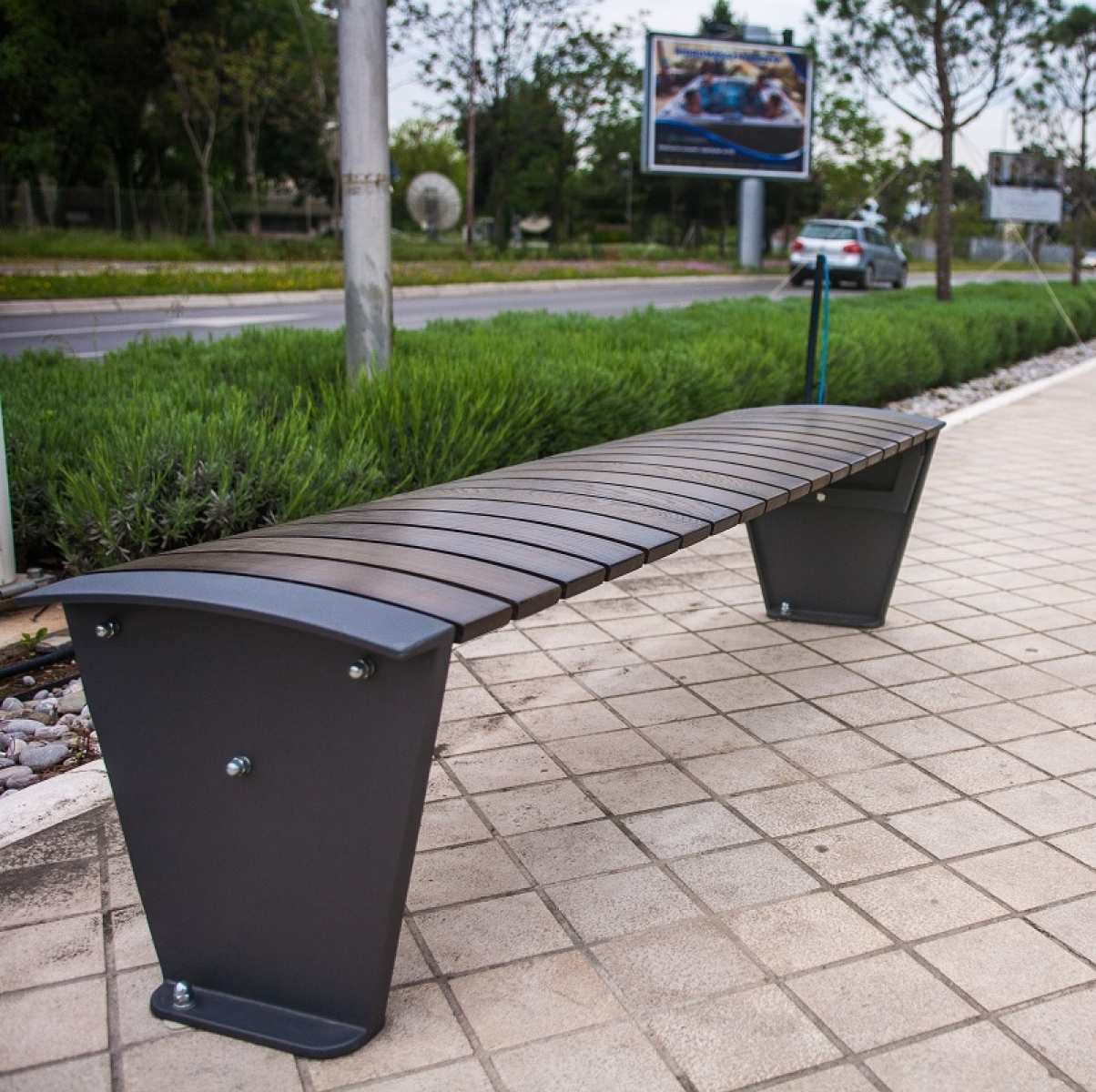 Banca stradala fara spatar din aluminiu si lemn de esenta tare Pekada 012