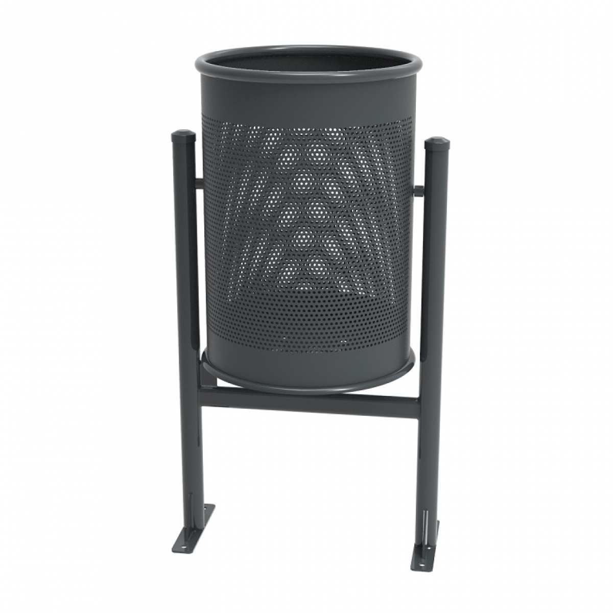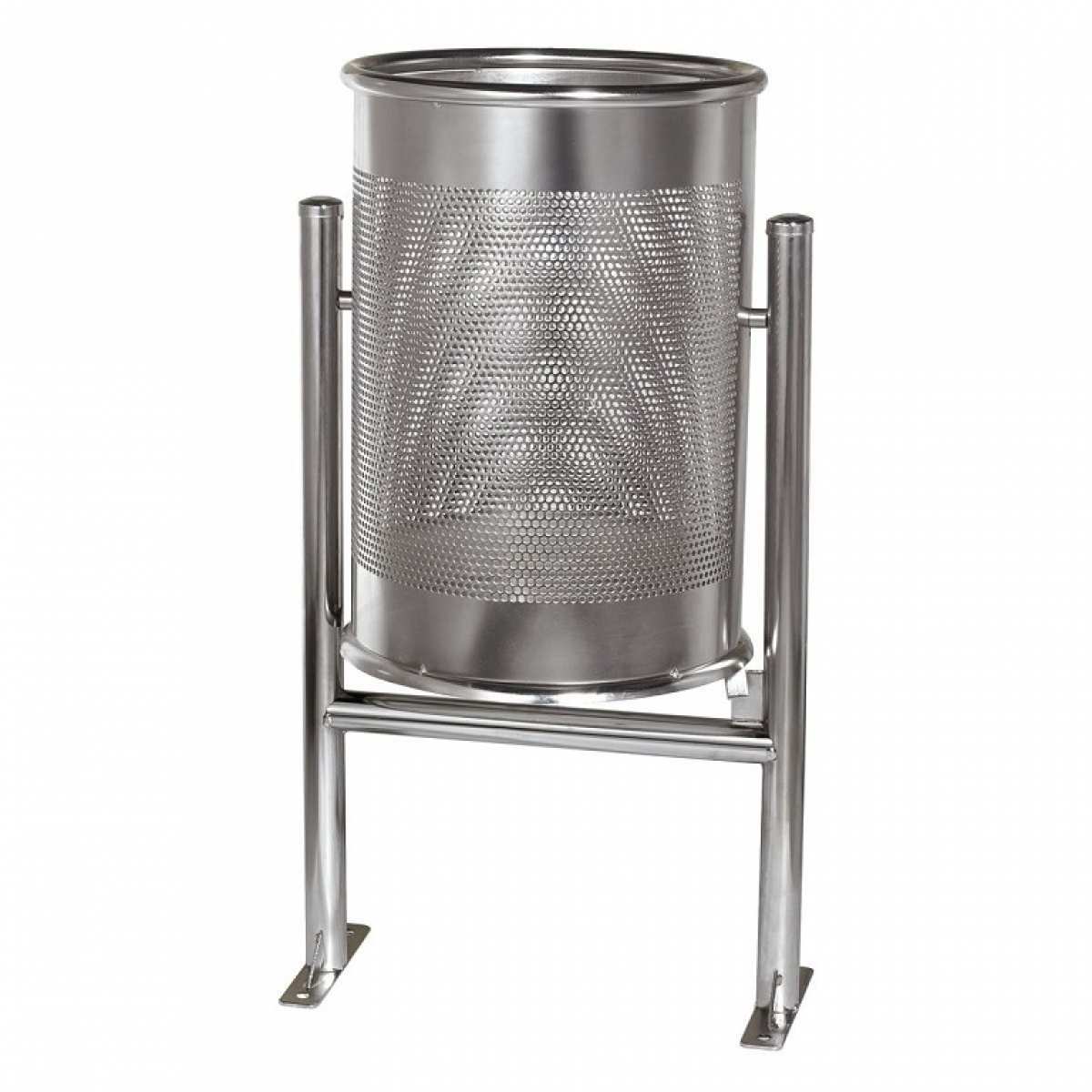 Cos stradal de gunoi rabatabil, fara capac, din tabla de otel perforata model BARCELONA  : Ø 380 x 475 x H 884, capacitate 60 litri.