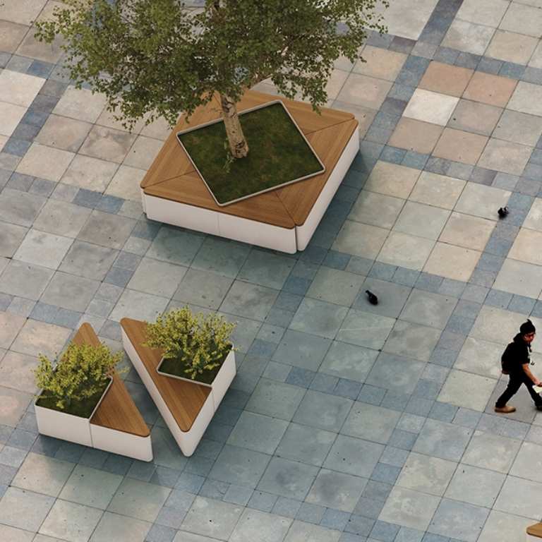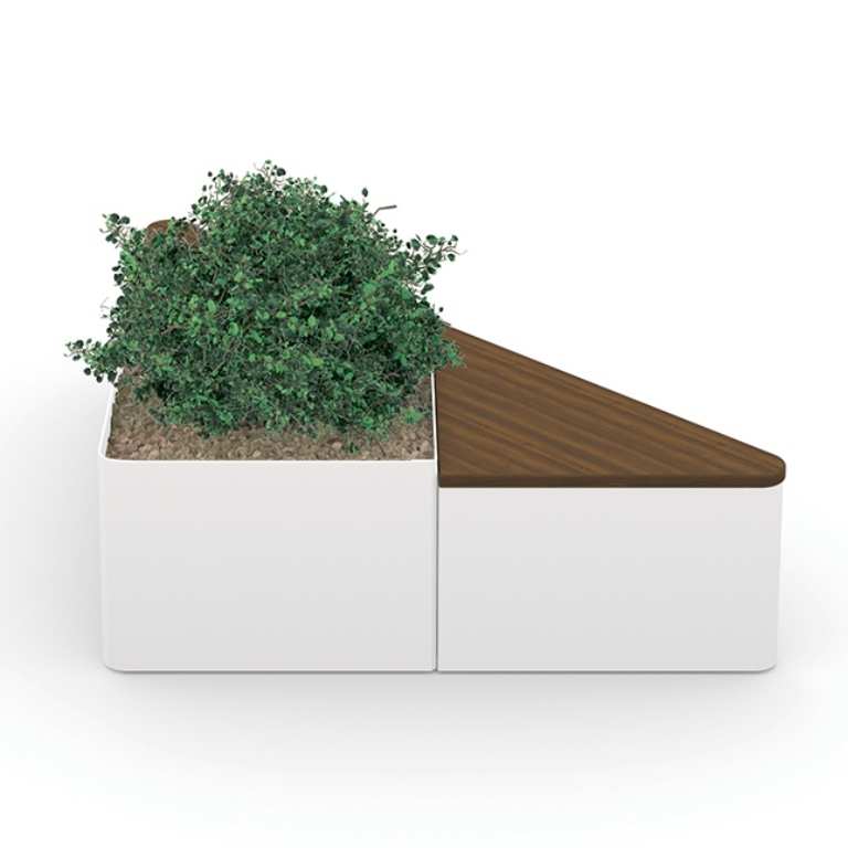 Jardiniera stradala metalica cu sezut din lemn exotic model TRIANGLE